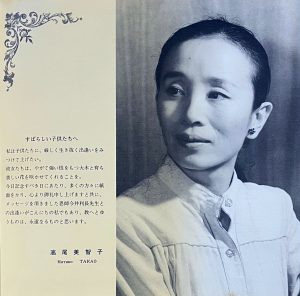 美智子先生から、小学生時代の恩師今井先生へ感謝のメッセージ(1979年:創立20周年記念プログラムより)