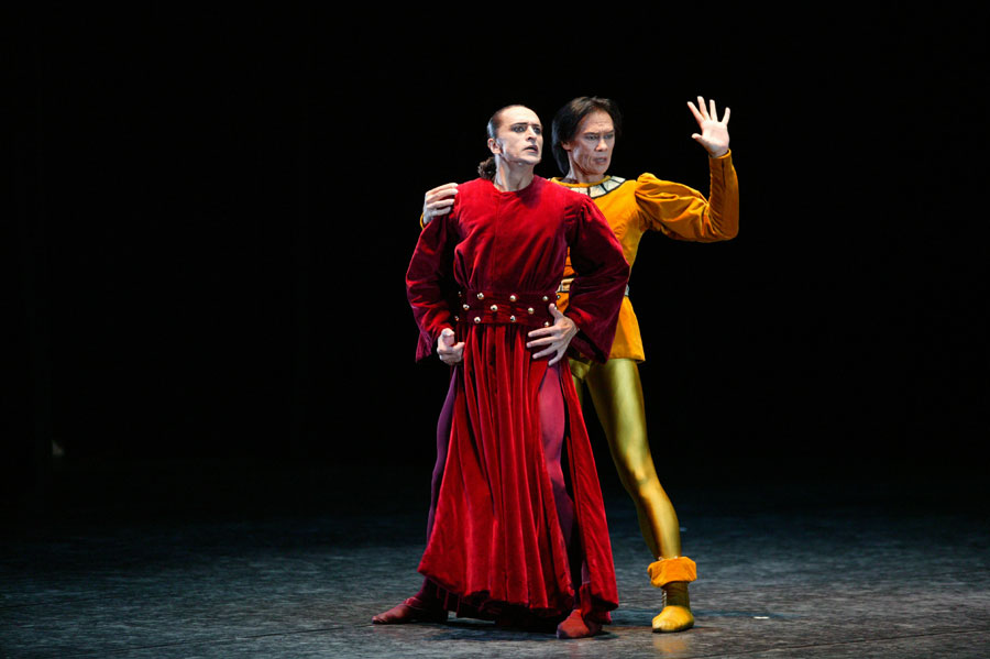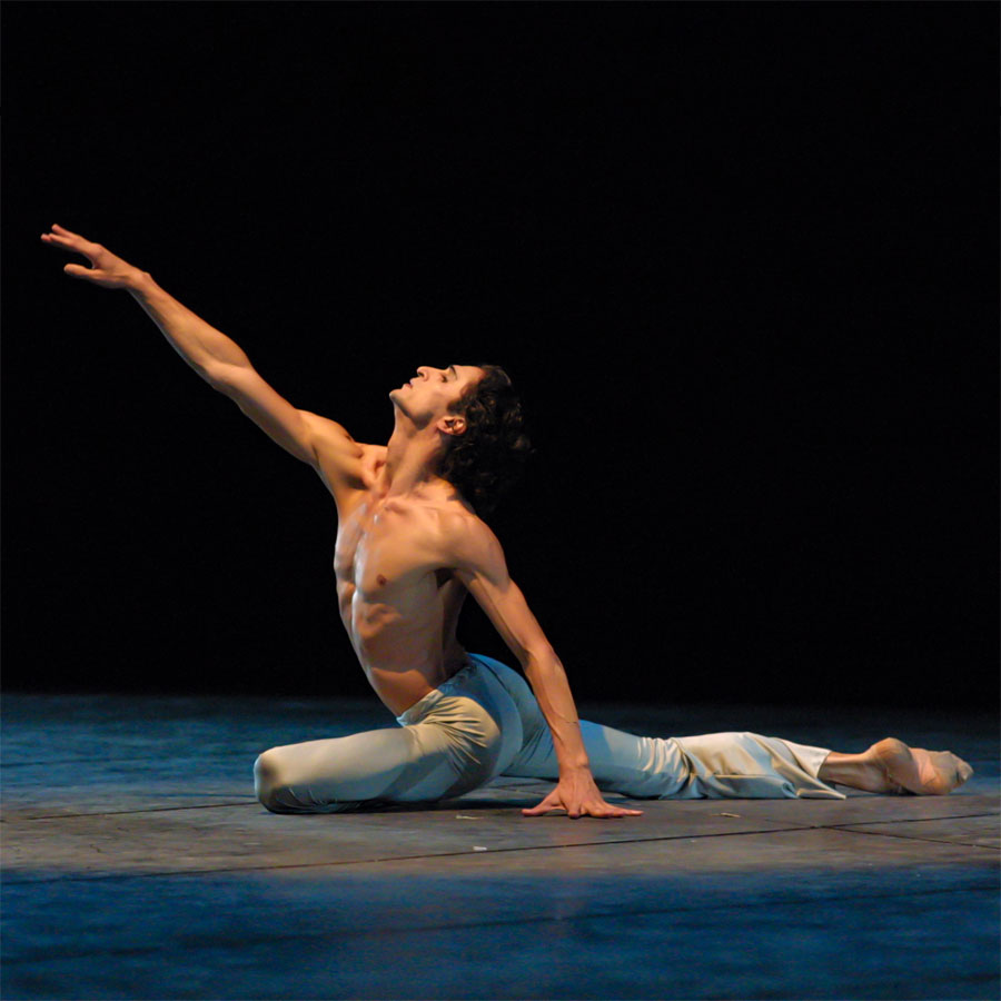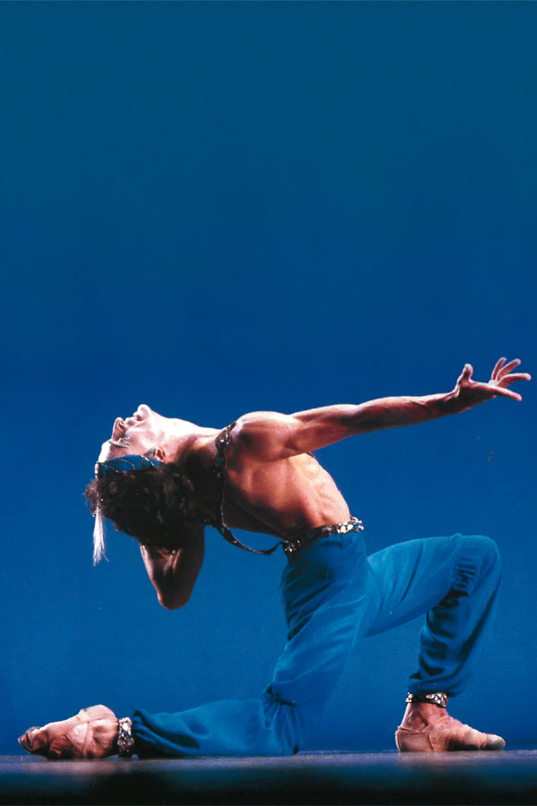 彼が自分のために選んできたのは、ニジンスキーが踊ったエキゾティックな『シェヘラザード』の金の奴隷、黒髪をオールバックにし、憂愁を帯びたダンディさを見せたニコライ・タグノフ振付のタンゴ『エル・チョクロ』、自由を求め新たな世界に飛び立とうともがく孤独な男を描いた、ボリス・エイフマン振付『アルビノーニのアダージョ』、シェイクスピアの『オテロ』を原作としたホセ・リモン振付『ムーア人のパヴァーヌ』。そして、近年では、日本舞踊の名舞踊手であり振付家の藤間蘭黄の作品『信長』での信長等々。